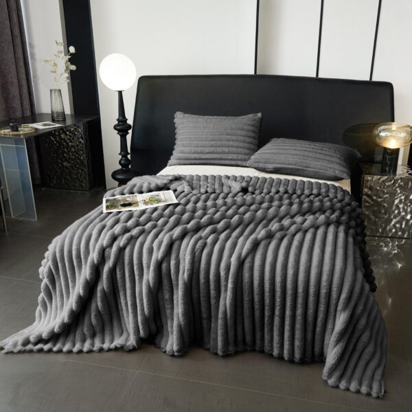 Pufnasti luksuzni prekrivač od zečijeg krzna 200×230 + 2 jastučnice 50×70 Tamno sivi