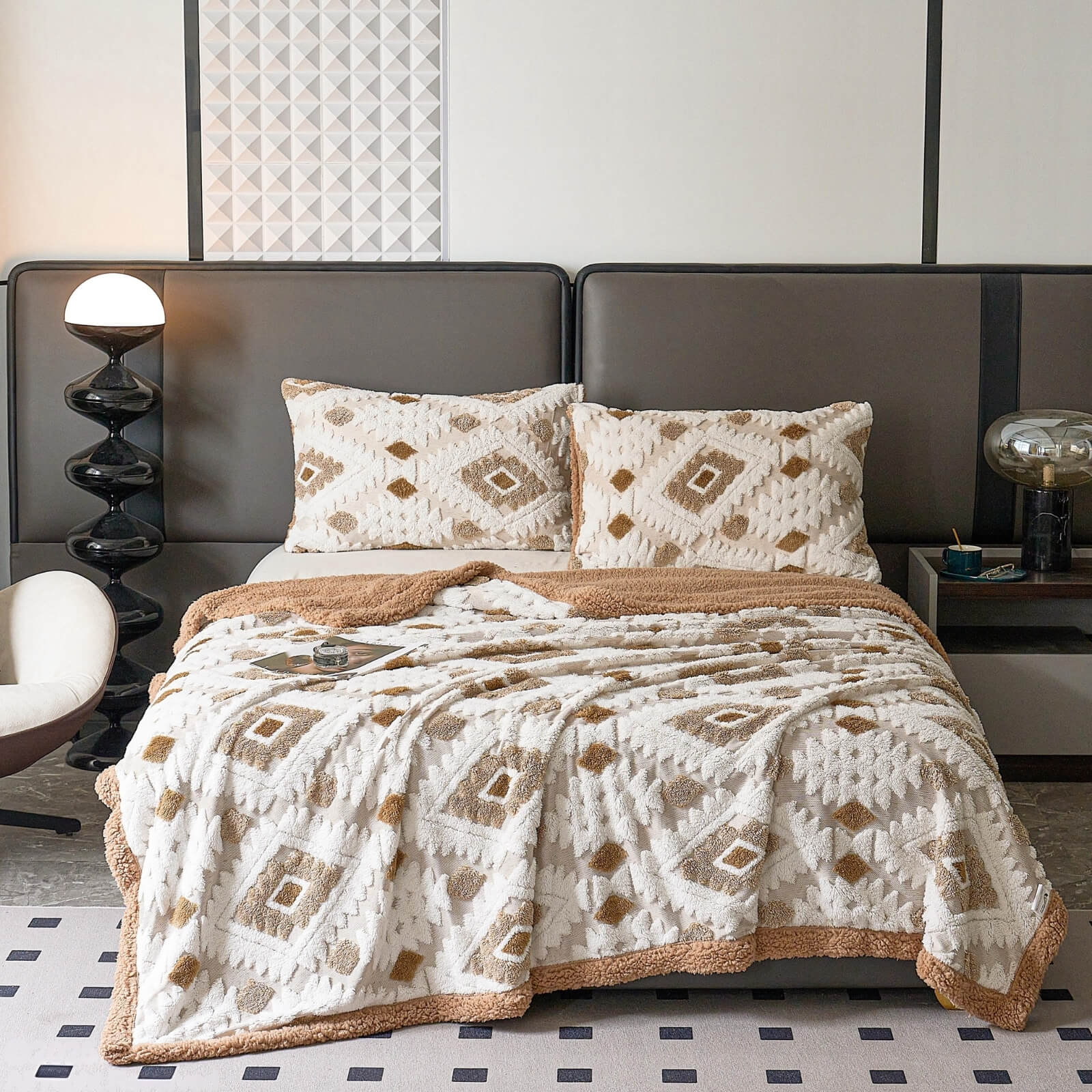 Premium Dvostrani Set • Mekana Šerpa Donja Strana • Elegantan 3D Romboid Dizajn • Dostupan u Više Boja