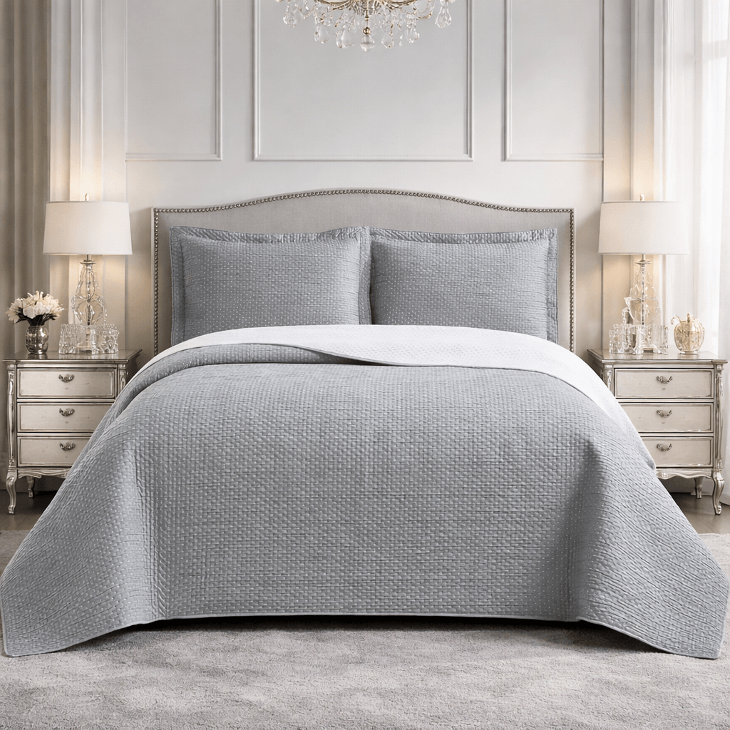 Unesite eleganciju i uredan izgled u svoju spavaću sobu uz luksuzni prekrivač sa jastučnicama koji u trenutku transformiše vaš krevet u moderan i sofisticiran prostor.
