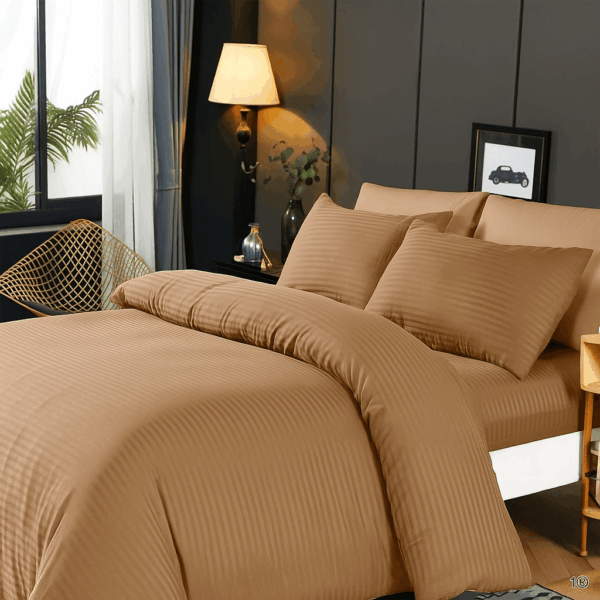 Ova elegantna posteljina izrađena je od vrhunskog damasta – prirodnog pamučnog materijala sa diskretnim sjajem i teksturom, koji se koristi u hotelima visoke kategorije.